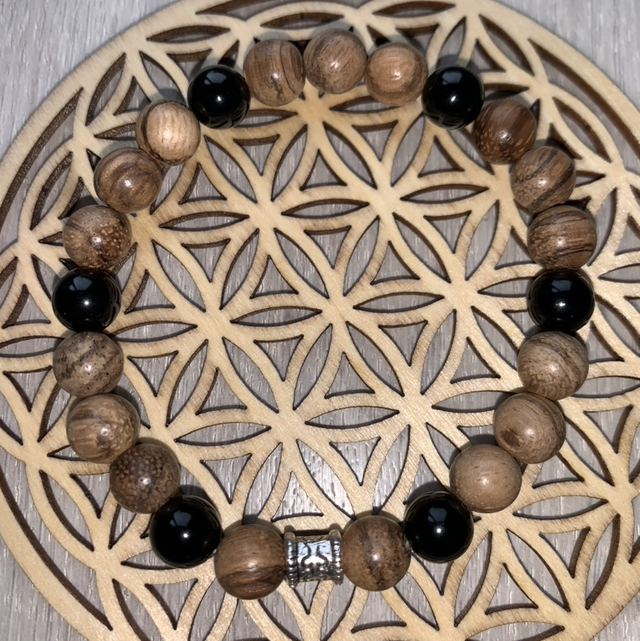 Ce bracelet en perles de bois et d’obsidienne noire du Mexique vous apportera stabilité, ancrage et protection