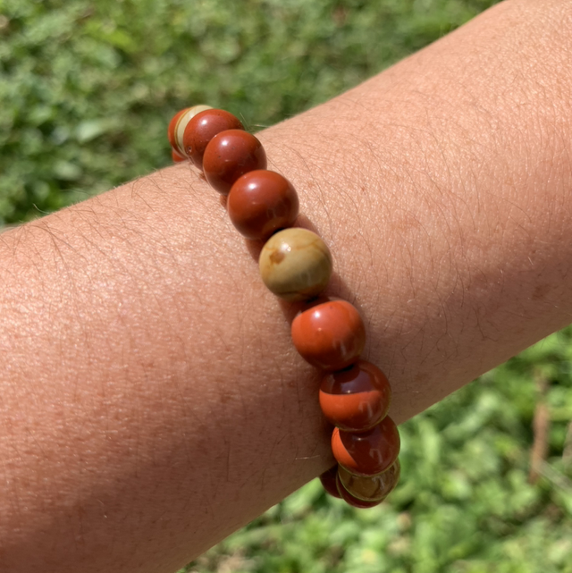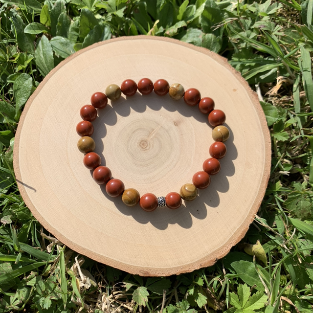 Bracelet jaspe rouge et jaspe bois