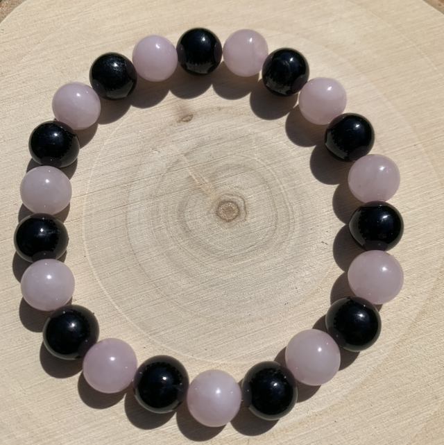 Bracelet Quartz rose et Tourmaline